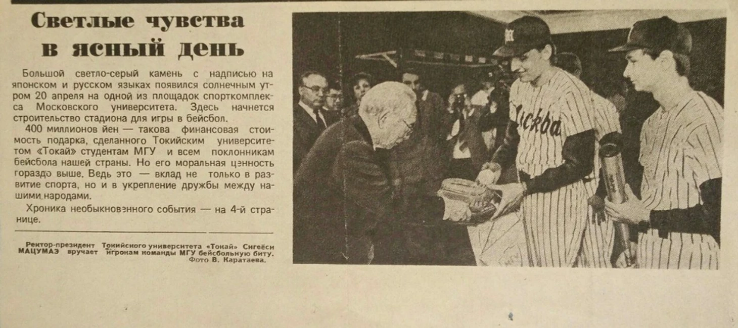 Первый чисто бейсбольный стадион появился в Москве в 1989 году – это был подарок МГУ им. Ломоносова от японского Университета Токай. Руководство СССР в те годы чертило масштабные планы по развитию бейсбола в стране.