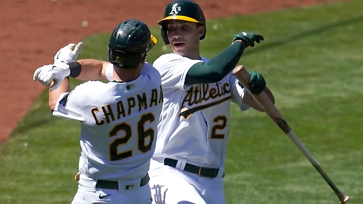 Во втором иннинге Мэтт Чэпмэн выбил дабл (9),а Элвис Андрус и Тони Кемп прибежали в дом.Затем Мэтт Олсон выбил дабл (16) и Мэтт Чэпмэн прибежал в дом.