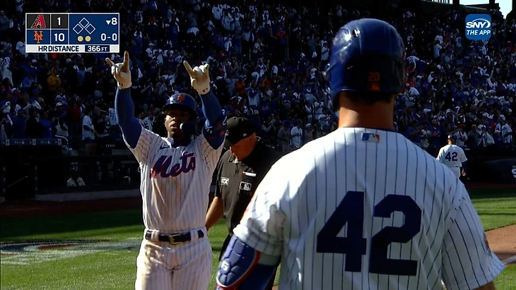 В 3 иннинге после аута Пита Алонсо Старлинг Марте успел прибежать в дом.
