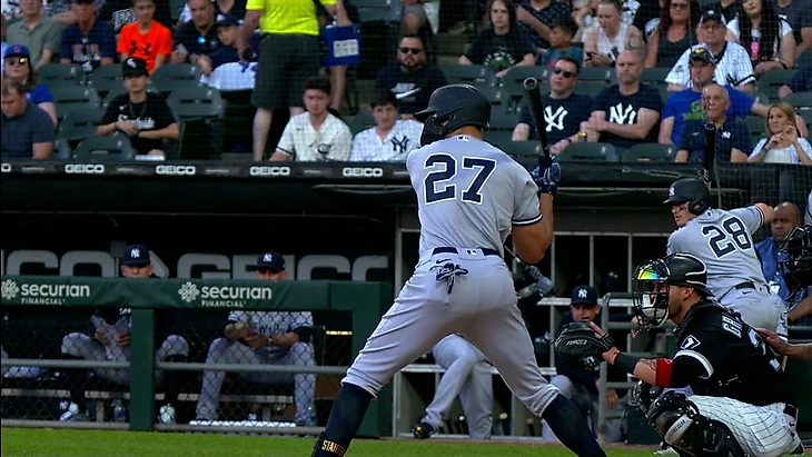В 8 иннинге Аарон Юдже выбил сингл,а Марвин Гонсалес и Глейбер Торрес вывели гостей вперёд.Затем Джанкарло Стэнтон выбил сингл,а Ди-Джей ЛеМахье и Аарон Юдже прибежали в дом.Далее Джош Дональдсон своим хоум-раном (3) отправил Энтони Риццо и Джанкарло Стэнтона в дом.