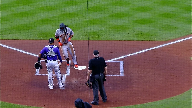 Во втором иннинге Брэндон Кроуфорд выбил трипл (1) и сам же успел прибежать в дом.