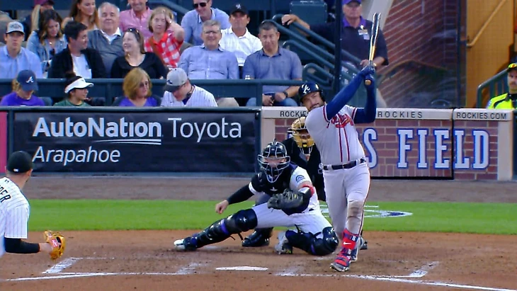 В 6 иннинге Дансби Суонсон выбил дабл (10) и Рональд Акунья прибежал в дом.Затем Остин Райли выбил дабл (12) и Дансби Суонсон прибежал в дом.Далее Мэтт Олсон выбил сингл и Остин Райли прибежал в дом.