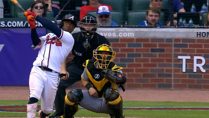 В 7 иннинге Майкл Харрис выбил сингл и Марсель Озуна прибежал в дом.Затем Дансби Суонсон выбил сингл,а Адам Дюваль с Майклом Харрисом и Рональдом Акуньей прибежали в дом.Затем Оззи Албис своим гранд-слэмом (8) отправил Дансби Суонсона с Остином Райли и Мэттом Олсоном прибежали в дом.