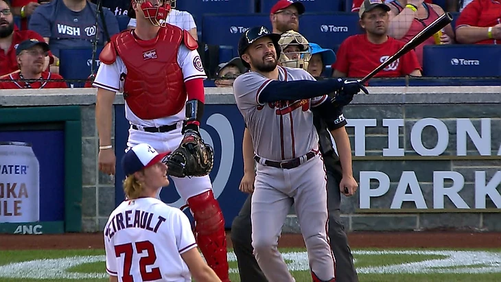В 3 иннинге Трэвис Д'Арно своим хоум-раном (8) отправил Остина Райли и Мэтта Олсона в дом.Затем Марсель Озуна выбил хоум-ран (12).Далее Майкл Харрис выбил дабл (6) и Орландо Арися прибежал в дом.