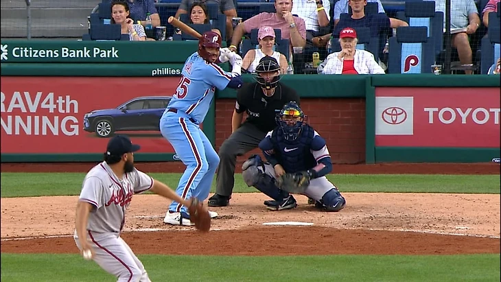 В 3 иннинге Кайл Шварбер своим хоум-раном (23) отправил Брайсона Стотта и Мэтта Вирлинга в дом.Затем Рис Хоскинс выбил хоум-ран (15).