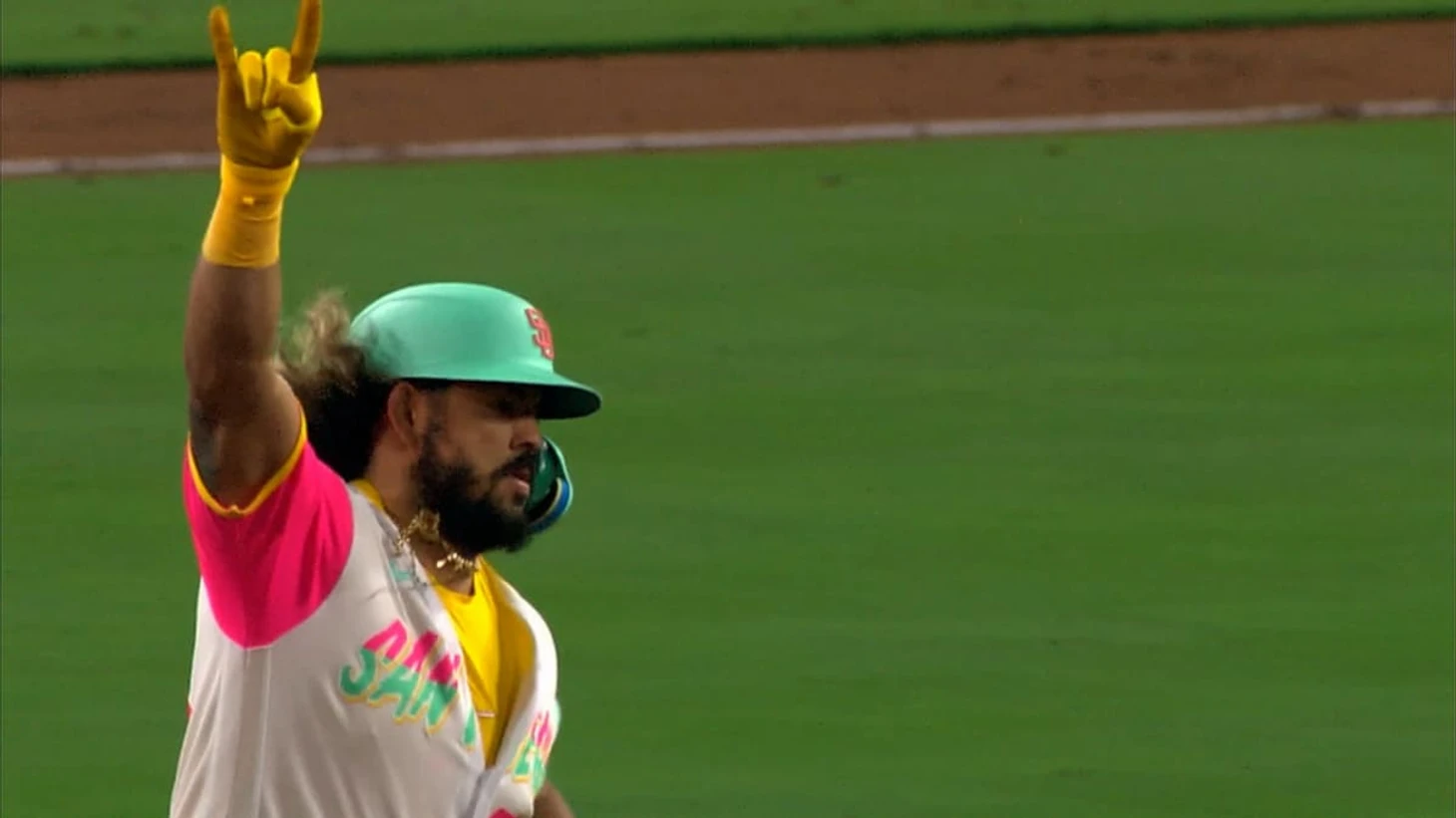 В 5 иннинге Манни Мачадо своим хоум-раном (17) отправил Ха Сенг Кима в дом.Затем Люк Войт выбил дабл (18) и Джейк Кроненуорт прибежал в дом.Далее Хорхе Альфаро своим хоум-раном (7) отправил Люка Войта и Эрика Хосмера в дом.