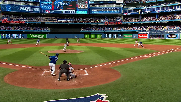 В 5 иннинге Теоскар Эрнандес и Дэнни Джэнсен выбили по хоум-рану (23 и 15).Затем Владимир Герреро выбил дабл (35) и Джордж Спрингер прибежал в дом.