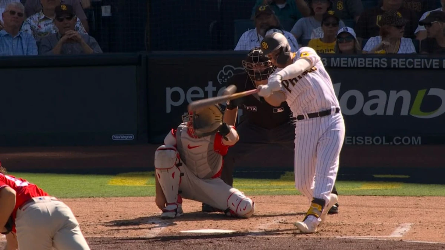 В 5 иннинге Остин Нола выбил сингл и Ха Сенг Ким прибежал в дом.Затем Хуан Сото выбил дабл (2) и Остин Нола сравнял счёт в матче.Далее Брэндон Друри выбил сингл,а Юриксон Профар и Хуан Сото вывели хозяев вперёд.После этого Джош Белл выбил сингл и Джэйк Кроненуорт прибежал в дом.