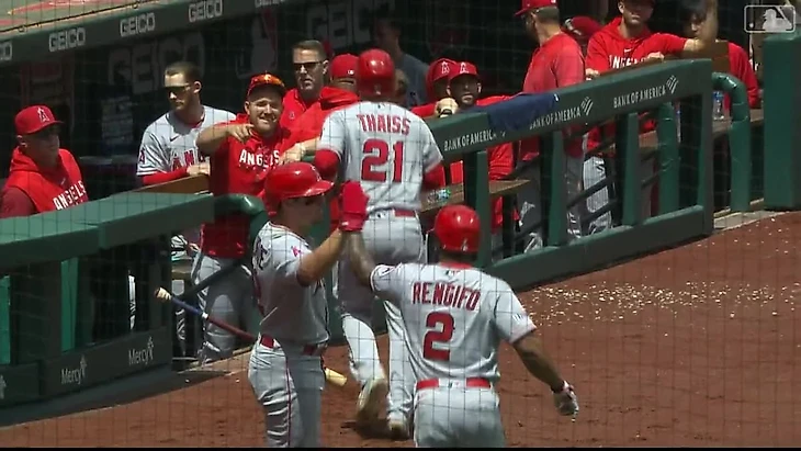 В 3 иннинге Джейк Лэмб выбил сингл и Шохеи Охтани прибежал в дом. После аута Тэйлора Уорда Хантер Ренфро успел прибежать в дом. Затем Мэтт Тайсс выбил сингл и Энтони Рендон прибежал в дом. Далее Бретт Филлипс выбил сингл и Джэйк Лэмб прибежал в дом. Посе этого Зак Нето выбил сингл, а Мэтт Тайсс и Луис Ренгифо прибежали в дом.