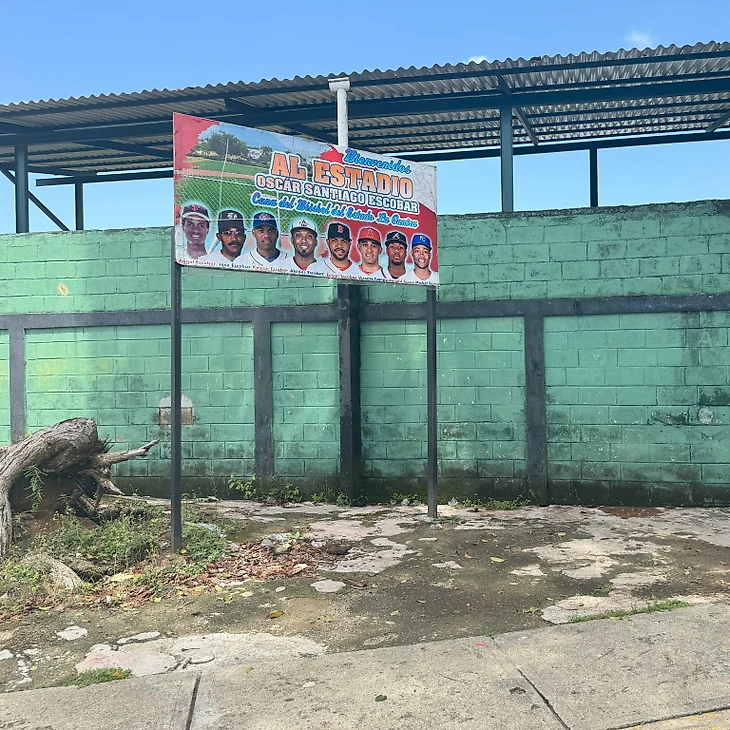 Конечно, там было бейсбольное поле. Но только одно. Стадион, спрятанный в углу района города, известного как Санта-Крус: стадион Оскара Сантьяго Эскобара. Оскар был известным учителем в городе и отцом Анхеля Эскобара (еще одного члена высшей лиги из Ла Сабаны, но почему-то не имеющего отношения к этой семье). На протяжении многих лет профессиональные игроки города вкладывали деньги в ремонт стадиона. И все же здесь есть свои особенности. Поле как бы не закончено. Оно находится около школы, но с другой стороны поля — кладбище. И власти так и не смогли найти компромисс, чтобы закончить поле.