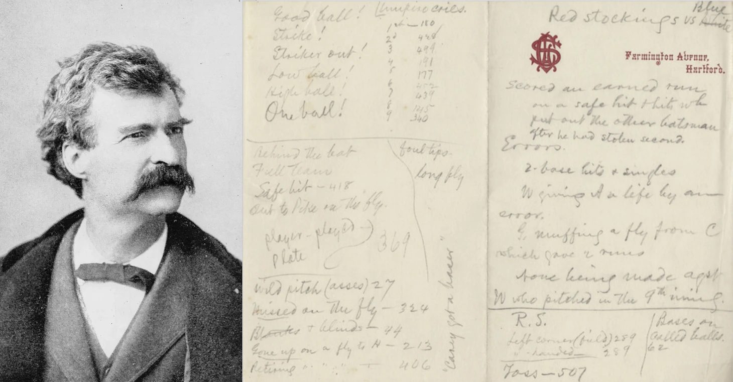 Игра, словно красная нить шва бейсбольного мяча, шла через жизнь автора известной фразы «Слухи о моей смерти несколько преувеличены». Он дружил с тем самым Альбертом Сполдингом, судил любительские матчи, питчил, даже на райских Бермудских островах ходил посмотреть иннинги в исполнении местных команд. Исследователи нашли упоминания бейсбола в различных рукописях автора. В книге «Янки из Коннектикута при дворе короля Артура» главный герой Хэнк Морган учил дворян играть в бейсбол.