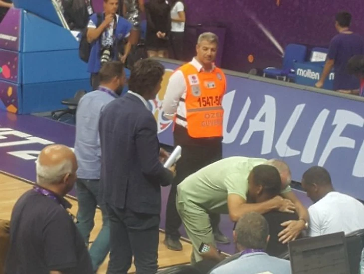 Наблюдавший за игрой главный тренер турецкой команды Желько Обрадович в большом перерыве встречи познакомился и пообщался с новобранцем, который также присутствовал на трибунах.