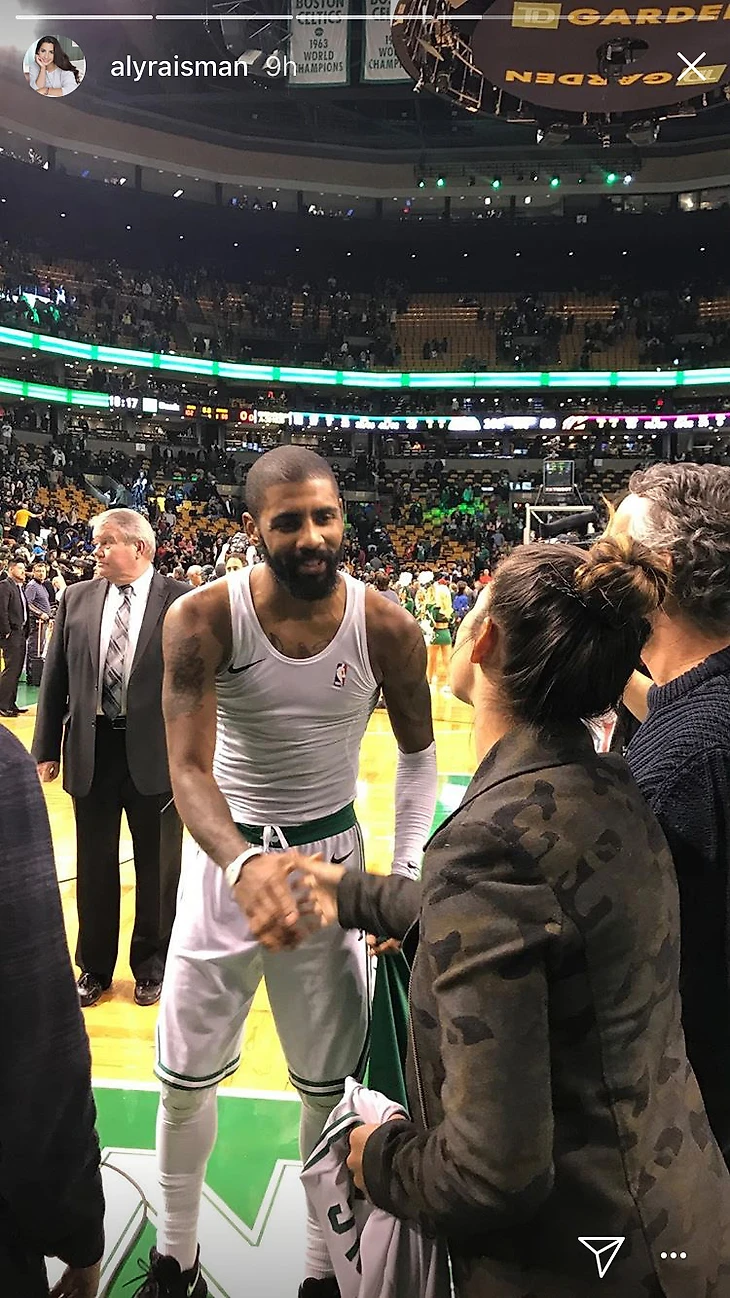 Разыгрывающий «Селтикс» Кайри Ирвинг после победы над «Кавальерс» (102:88) подарил свою игровую майку олимпийской чемпионке, американской гимнастке Александре «Эли» Райсман.