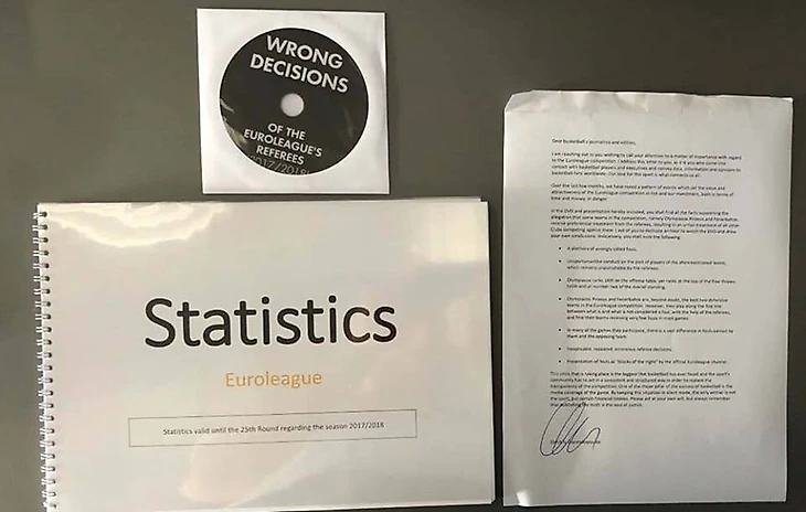 Владелец греческого «Панатинаикоса» Димитрис Яннакопулос разослал в СМИ письмо, статистические отчеты судейских решений в Евролиге и DVD под названием «Ошибки судей в сезоне-2017/18». По мнению Яннакопулоса, эти материалы являются доказательством того, что арбитры Евролиги «подсуживают» «Олимпиакосу» и «Фенербахче».