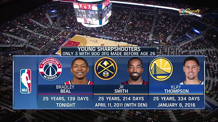 Атакующий защитник «Вашингтона» Брэдли Бил стал самым молодым игроком в истории НБА, который реализовал 900 трехочковых.