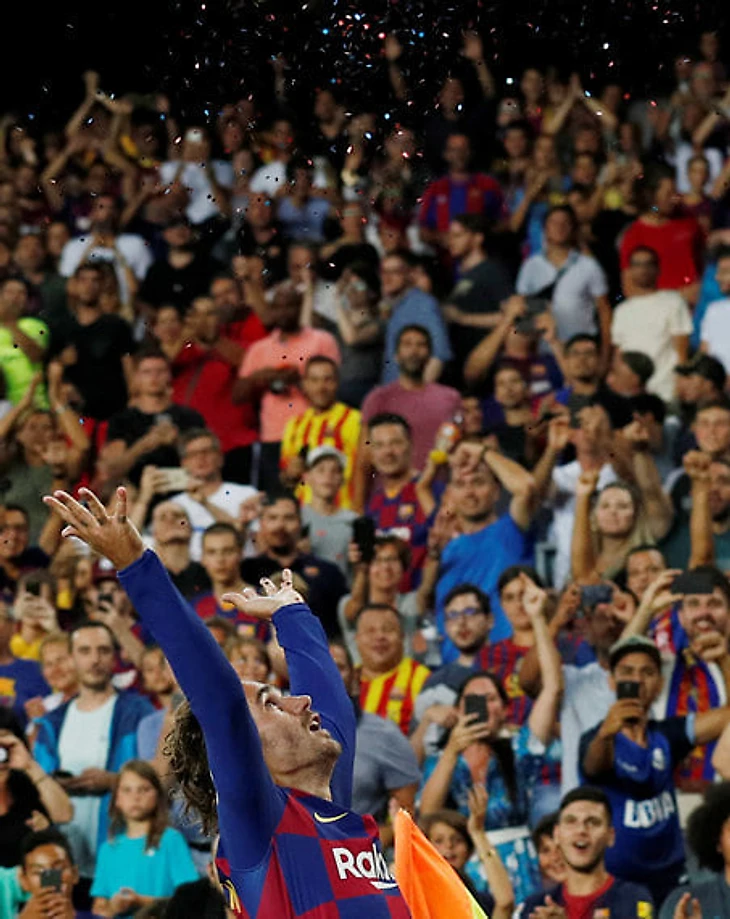 Нападающий футбольного клуба «Барселона» Антуан Гризманн, который перешел в команду летом 2019 года, в матче 2-го тура чемпионата Испании с «Бетисом» (5-2) оформил дубль. После второго гола он подбежал к трибуне, взял горстку конфетти и вскинул руки.