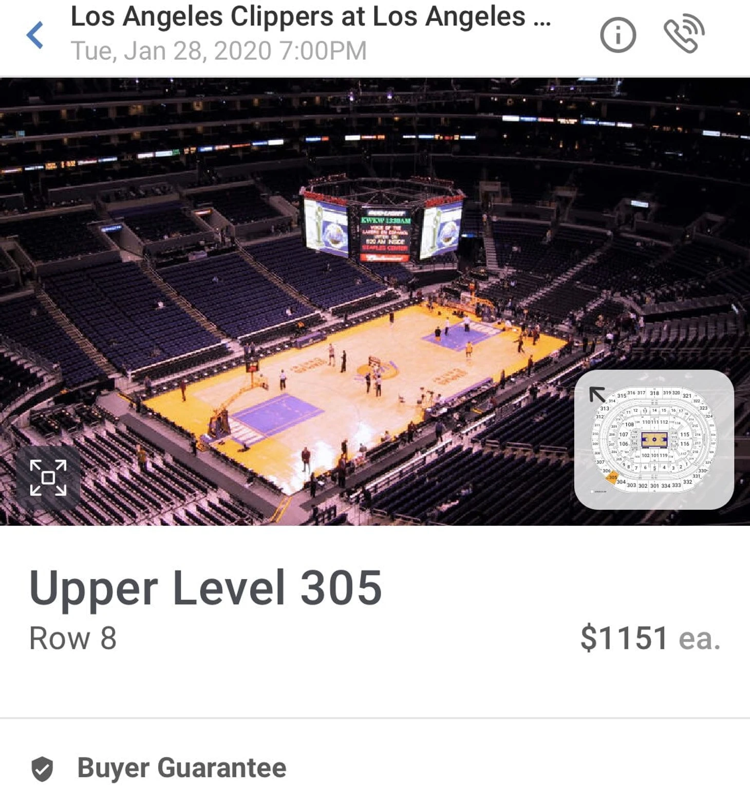 В свете трагической гибели Кобе Брайанта в воскресенье утром стоимость билетов на предстоящий матч «Лейкерс» – «Клипперс» резко взлетела, превысив 1000 долларов.