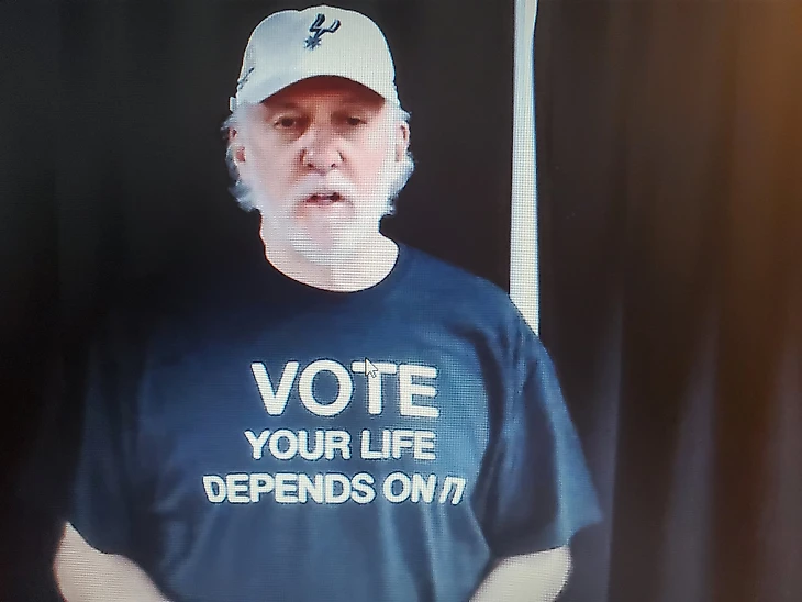Грегг Попович предстал перед журналистами в футболке «Голосуй: от этого зависит твоя жизнь»
