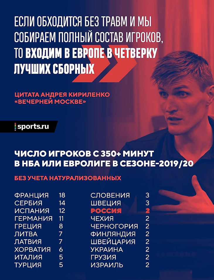 По мнению Кириленко, без травм и в полном составе национальная команда входит в четверку лучших европейских сборных.