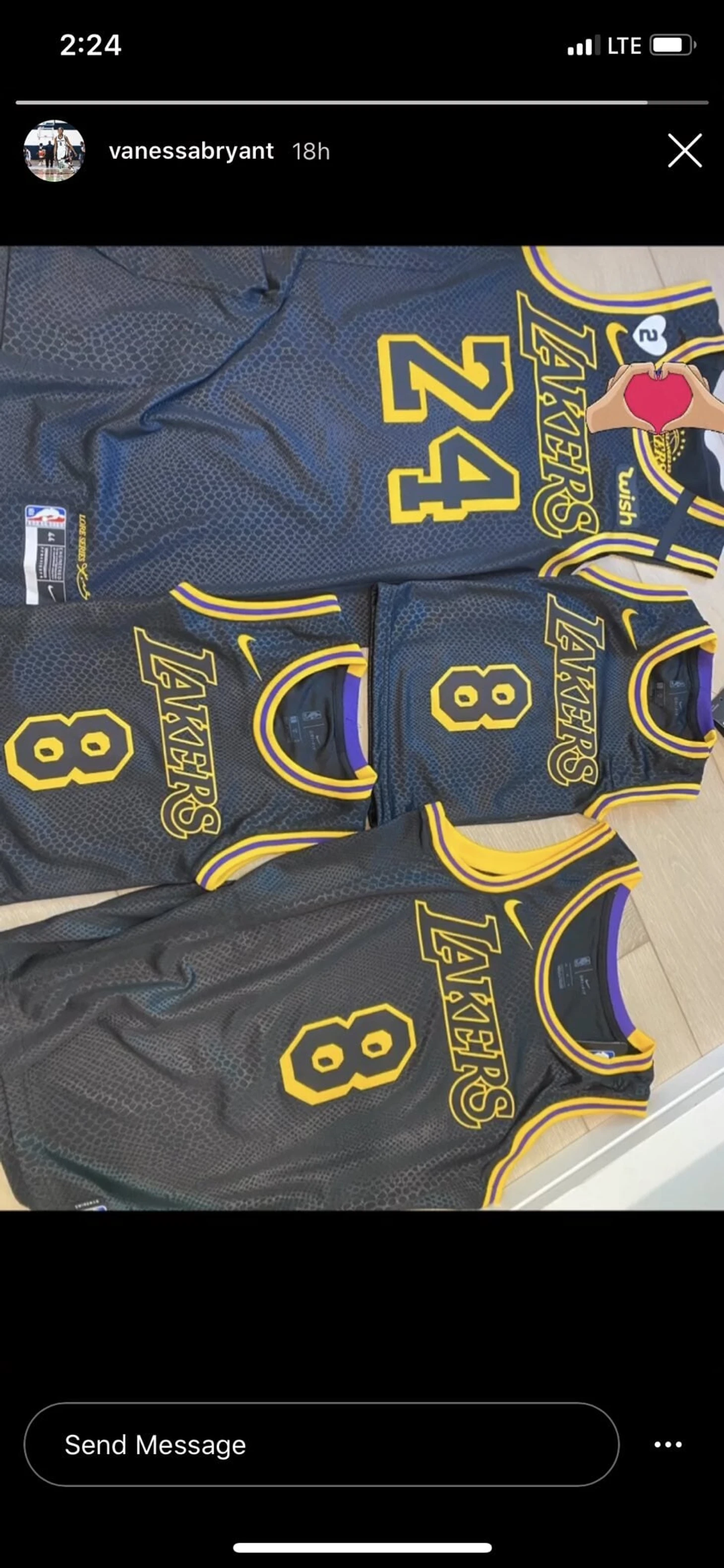 Вдова Кобе Брайанта, Ванесса, опубликовала фотографию новой формы в своем инстаграме.