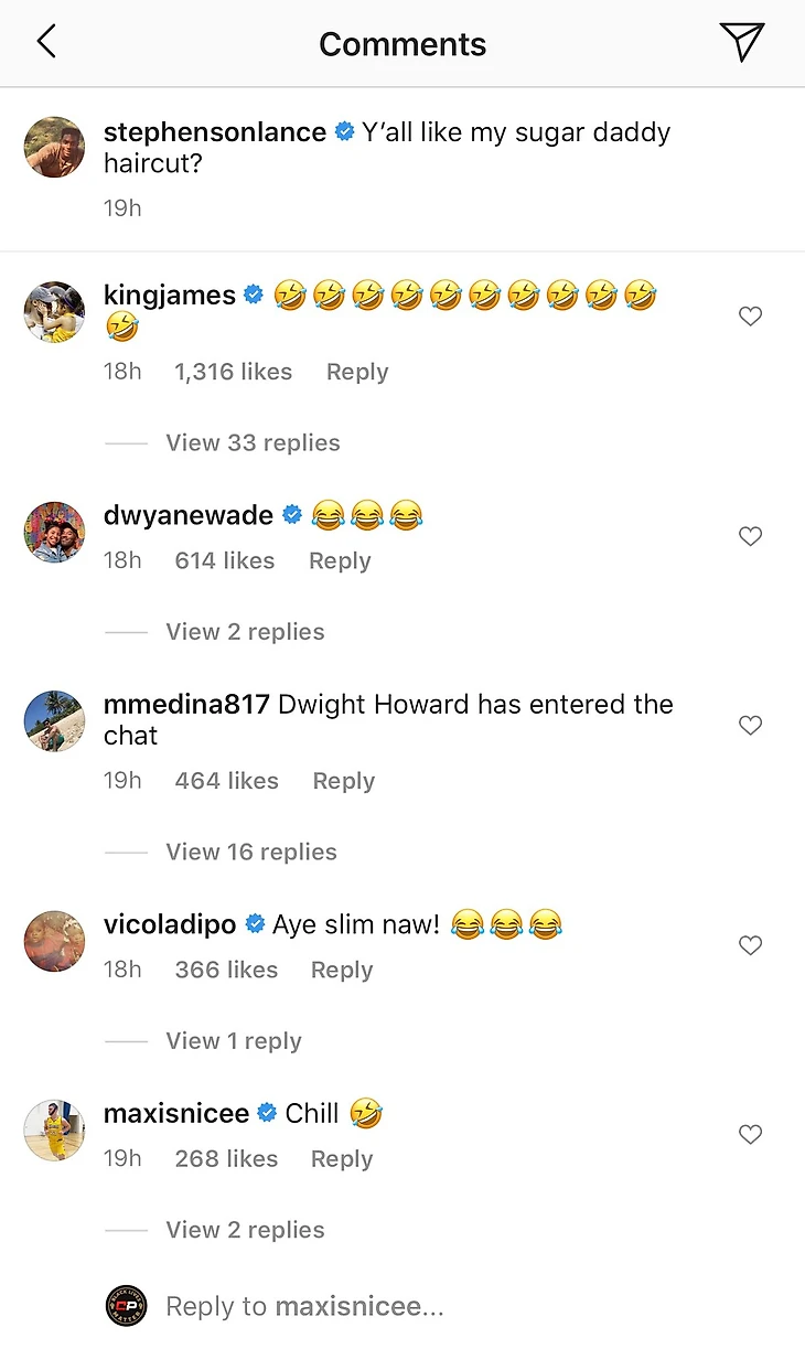 Бывшие одноклубники по «Майами» и «Кливленду» Леброн Джеймс и Дуэйн Уэйд отреагировали на пост Лэнса Стивенсона, в котором он показал новую прическу.