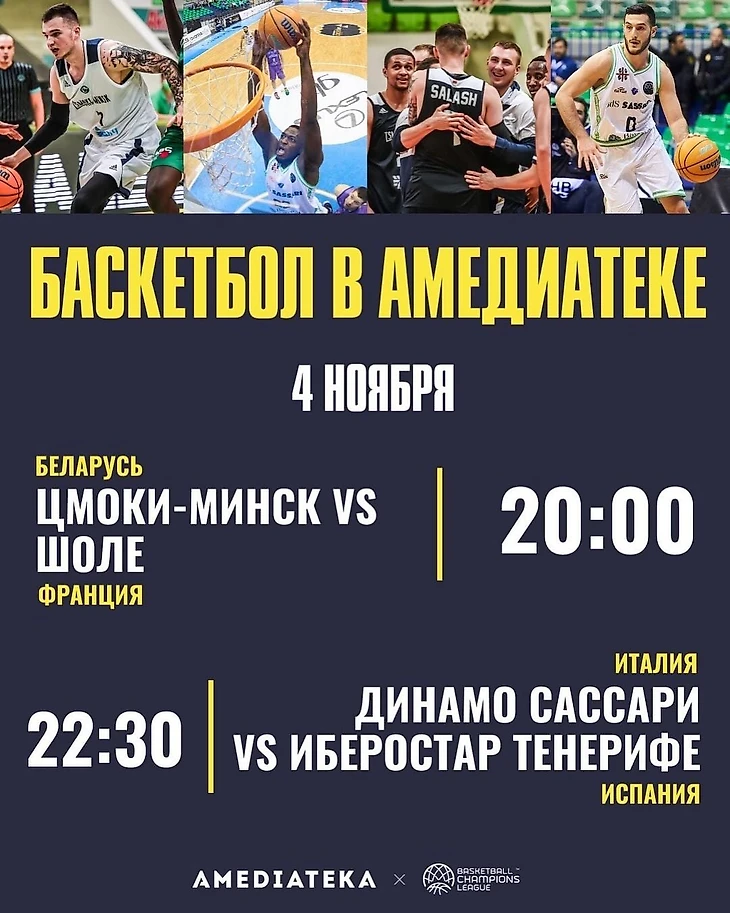 Поединки «Цмоки-Минск» – «Шоле» и «Динамо Сассари» – «Тенерифе» можно посмотреть в прямом эфире, а затем они будут доступны на портале в записи. Комментирует матчи Игорь Знаменский.