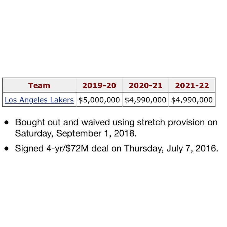 Денг при расторжении контракта с «Лейкерс» в 2018 году отказался от 7,5 миллионов из полагавшихся ему 36, что помогло клубу освободить место в платежке. Тем не менее, форвард остается в ведомости «Лейкерс» и должен получить 10 миллионов за следующие два сезона.