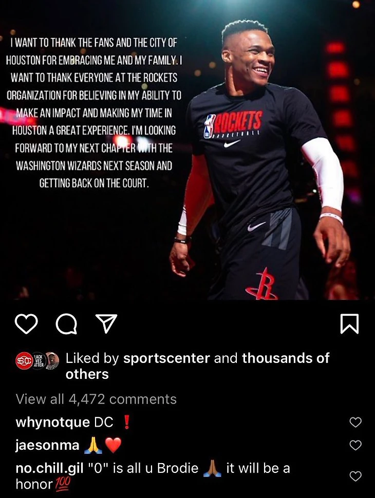 Уэстбрук решил выступать под 4-м номером, который использовал в школьной команде.