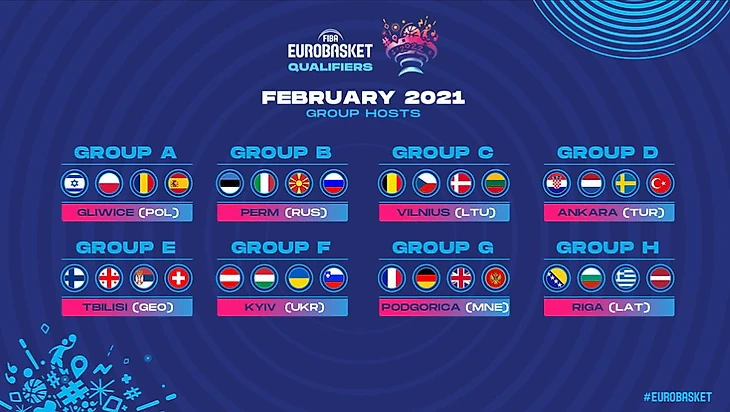 ФИБА назвала организаторов «пузырей» февральского «окна» на квалификационные матчи Евробаскета у мужских и женских сборных.