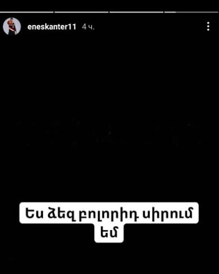 Турецкий центровой «Портленда» Энес Кантер в сторис инстаграма опубликовал запись на армянском языке: «Я вас всех люблю».