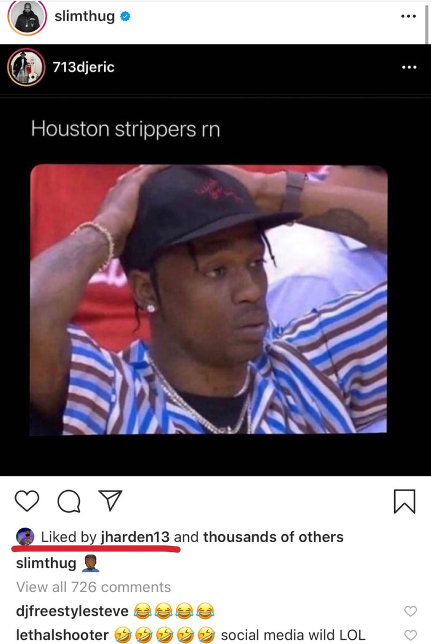 Джеймс Харден после обмена лайкнул пост о хьюстонских стрип-клубах