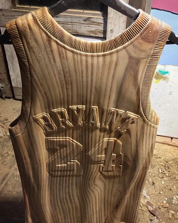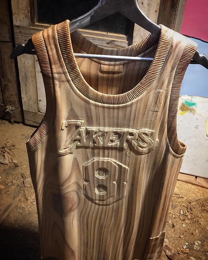 Итальянский скульптор сделал майку Кобе Брайанта из дерева