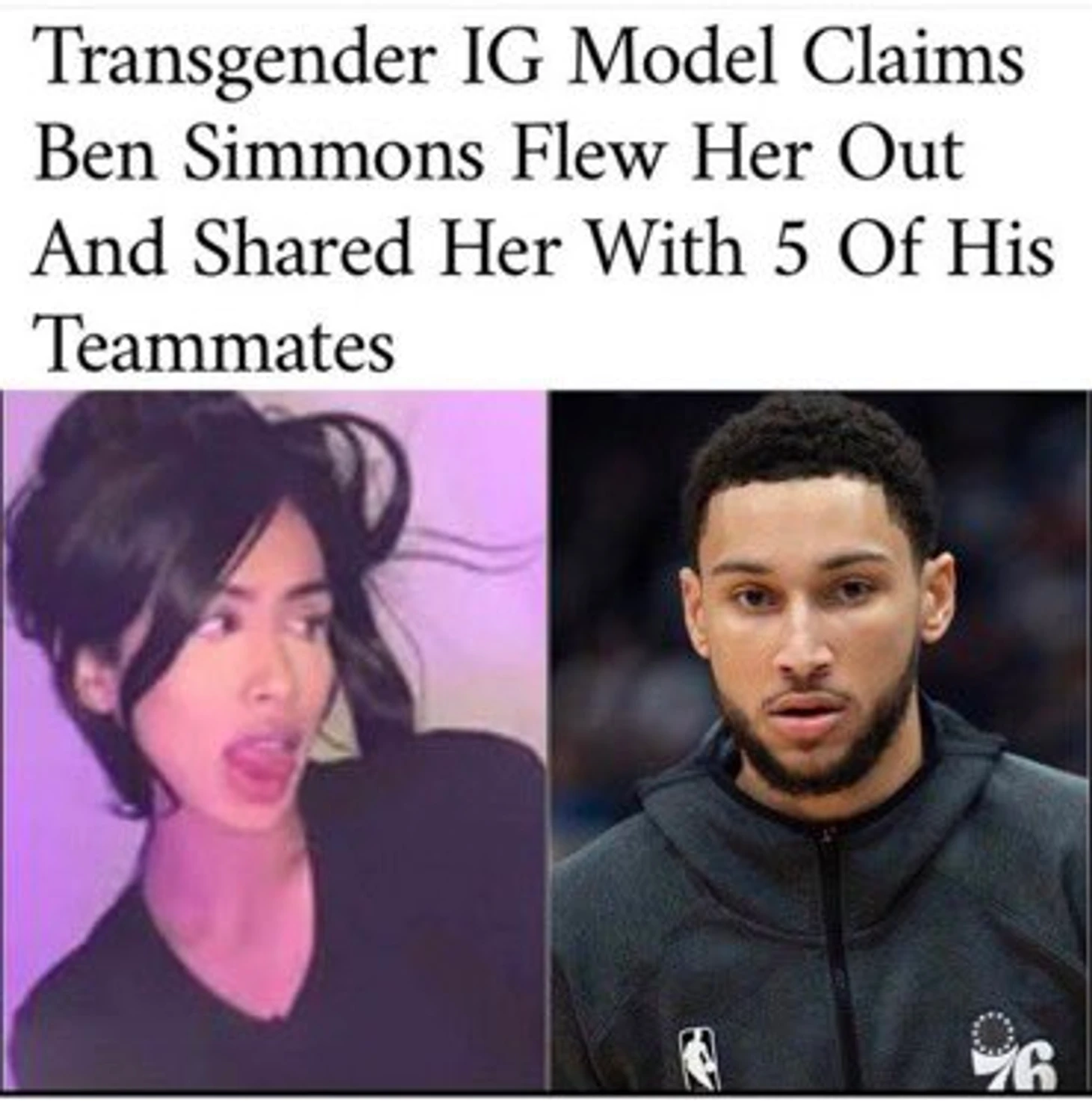 Трансгендерная инстаграм-модель утверждает, что Бен Симмонс предлагал ей секс с ним и его одноклубниками