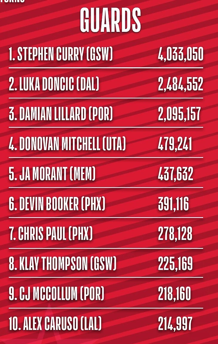 Например, на 8-е место с 10-го среди защитников Запада поднялся игрок «Уорриорз» Клэй Томпсон (225 169 голосов), пропускающий второй сезон кряду из-за травмы. Неделю назад многие болельщики были возмущены тем, что Клэй попал в Топ-10.