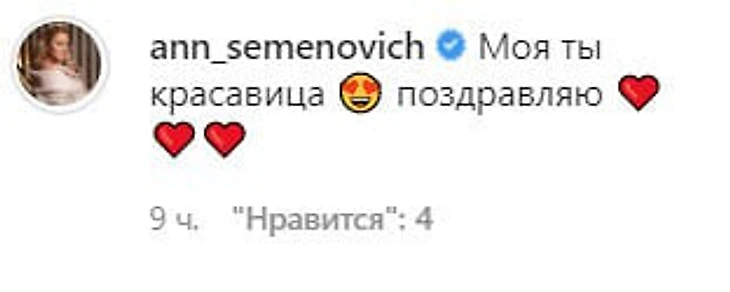 «Моя ты красавица! Поздравляю», – написала артистка.