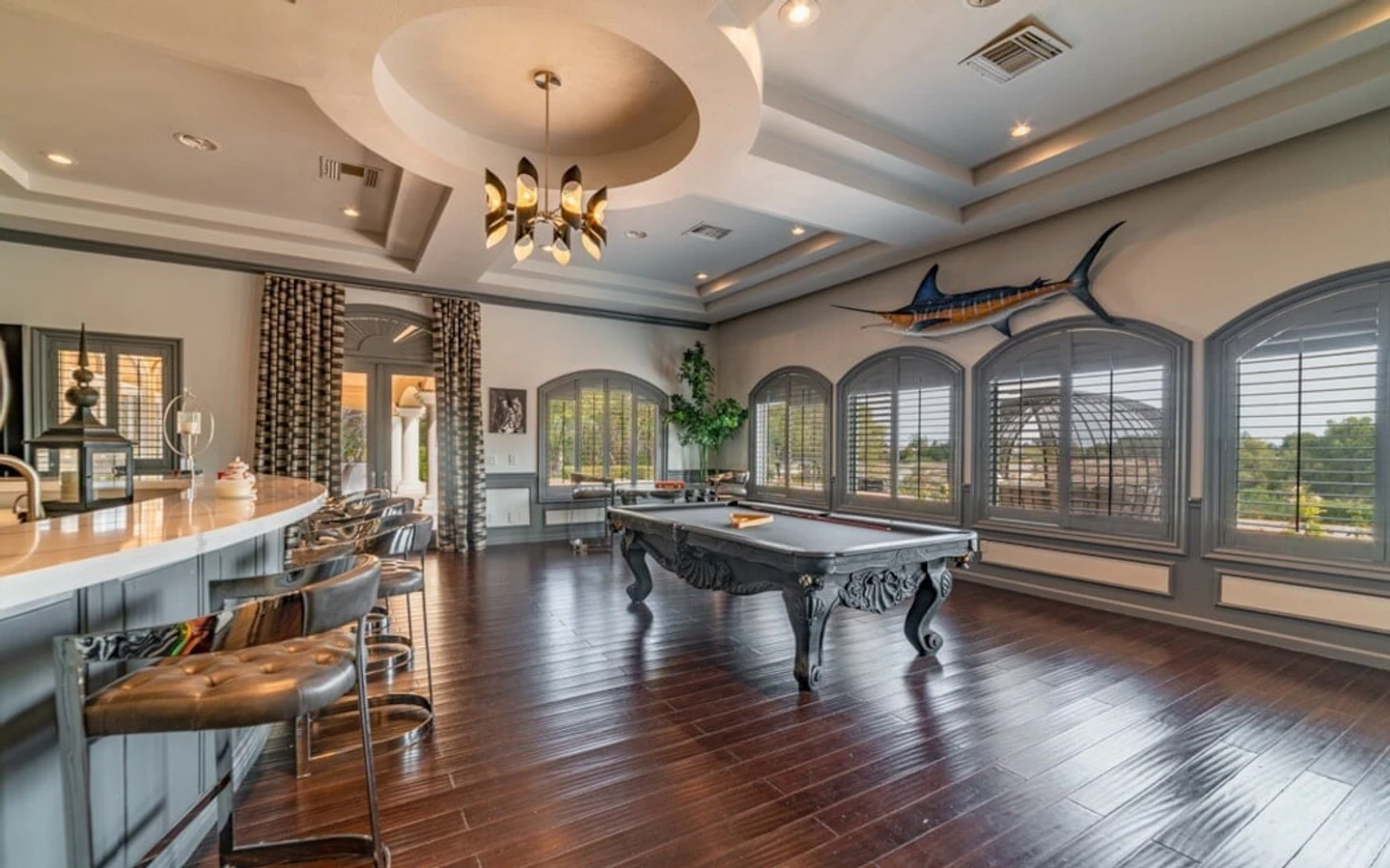 По данным TMZ Sports, в доме есть домашний кинотеатр, баскетбольная площадка, большой бассейн и водная горка. В особняке также есть 12 ванных комнат, 10 спален, спортивная медиа-комната и множество других объектов.