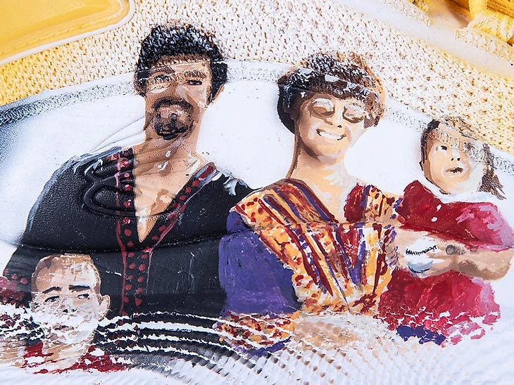 На эксклюзивных кроссовках художник вручную изобразил Брюса Ли с семьей. Дизайн был создан совместно с Шэннон Ли, дочерью известного киноактера и мастера боевых искусств, а также фондом имени Брюса Ли.