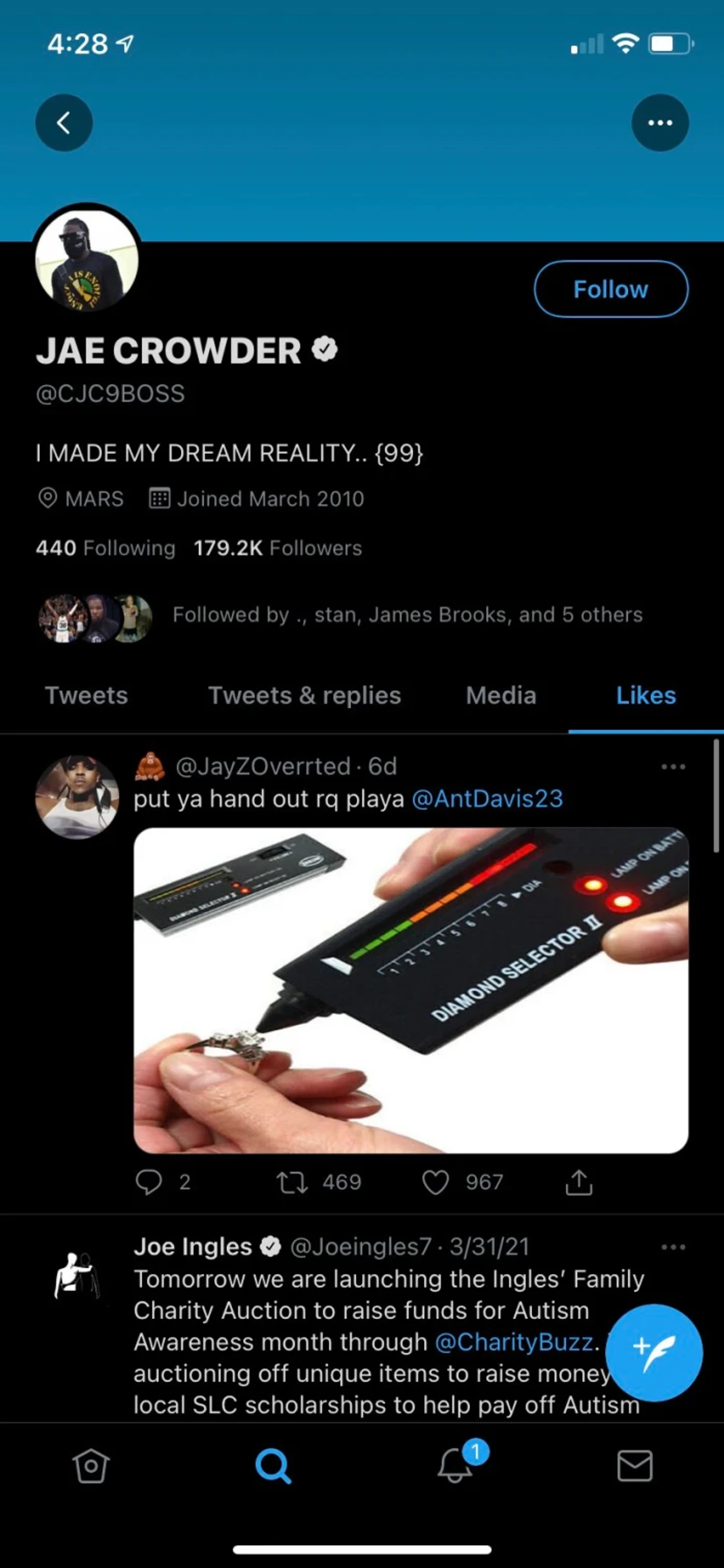 Форвард «Финикса» Джей Краудер лайкнул сообщение одного из пользователей твиттера, которое посвящено неполноценности чемпионского перстня звезды «Лейкерс» Энтони Дэвиса.
