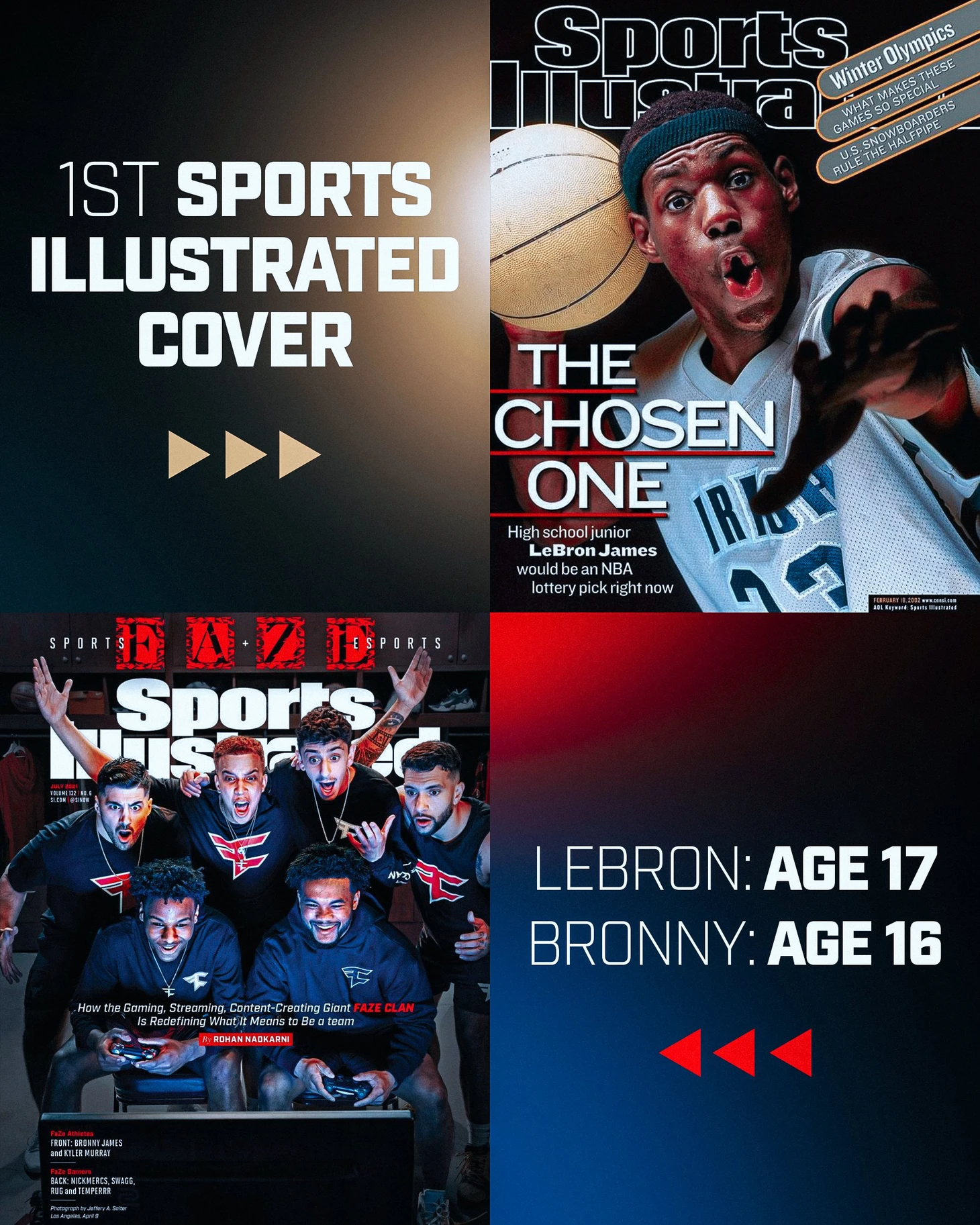 Бронни впервые оказался на обложке SI в 16-летнем возрасте, в то время как его знаменитому отцу Леброну Джеймсу из «Лейкерс» впервые удалось это в 17 лет.
