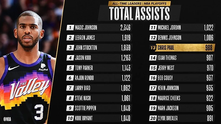 Пол обошел в общем списке легенду «Пистонс» Айзейю Томаса. Лидером по ассистам в плей-офф является Мэджик Джонсон.