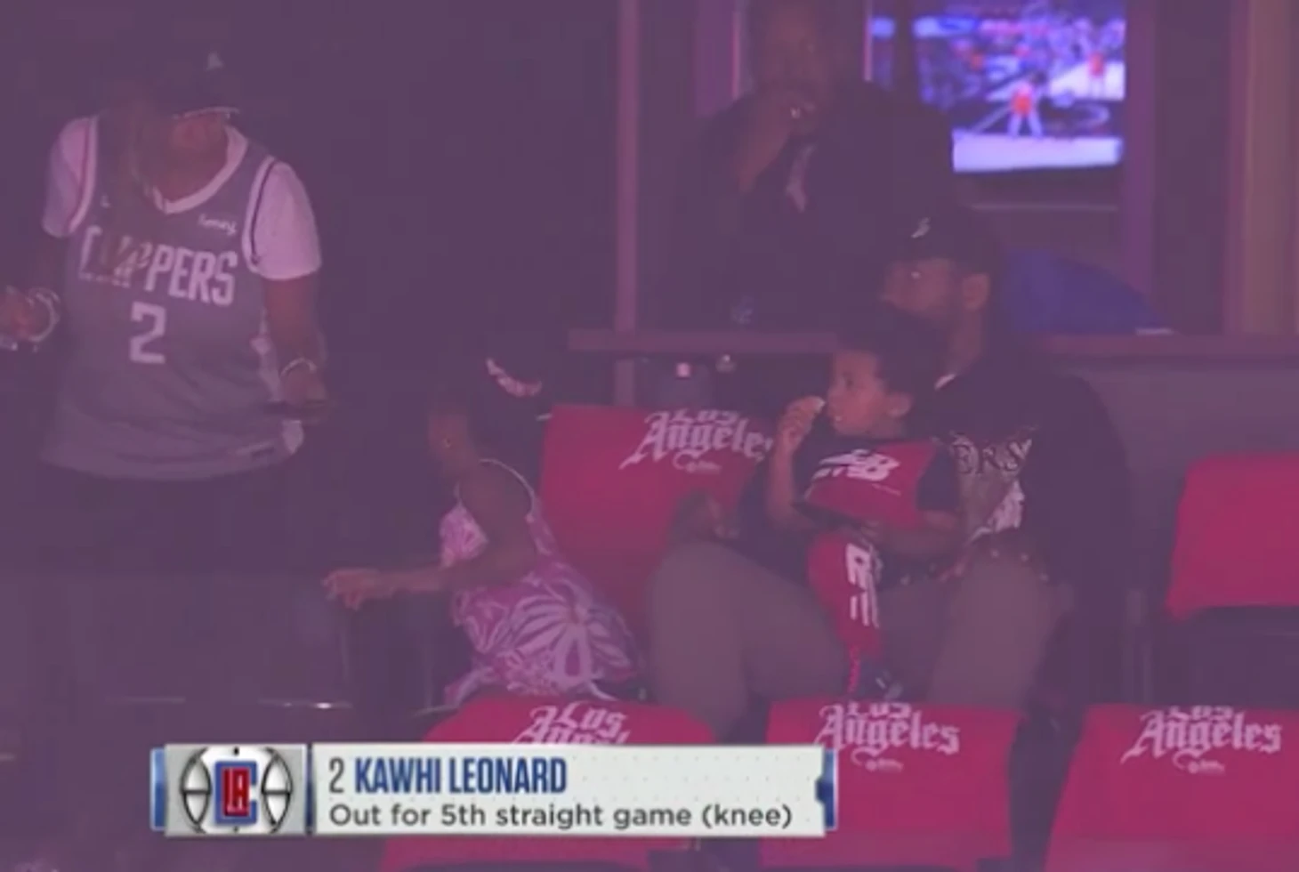 Кавай Ленард посетил 3-й матч против «Санз». Он пришел на игру с семьей