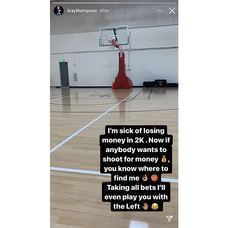 Принимаю любые ставки, я даже буду состязаться с вами левой рукой», – написал Томпсон в историях инстаграма.