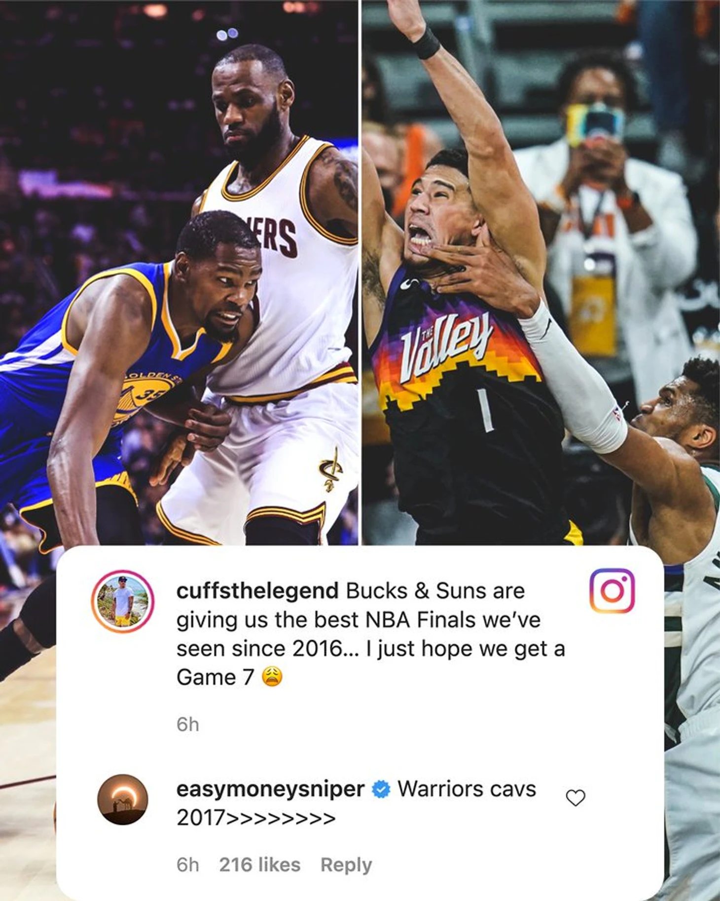 Дюрэнт отреагировал на пост болельщика в инстаграме, который написал, что в этом сезоне команды выдали лучший финал с 2016 года, когда «Кавальерс» отыгрались с 1-3 в серии с «Уорриорз» 73-9.