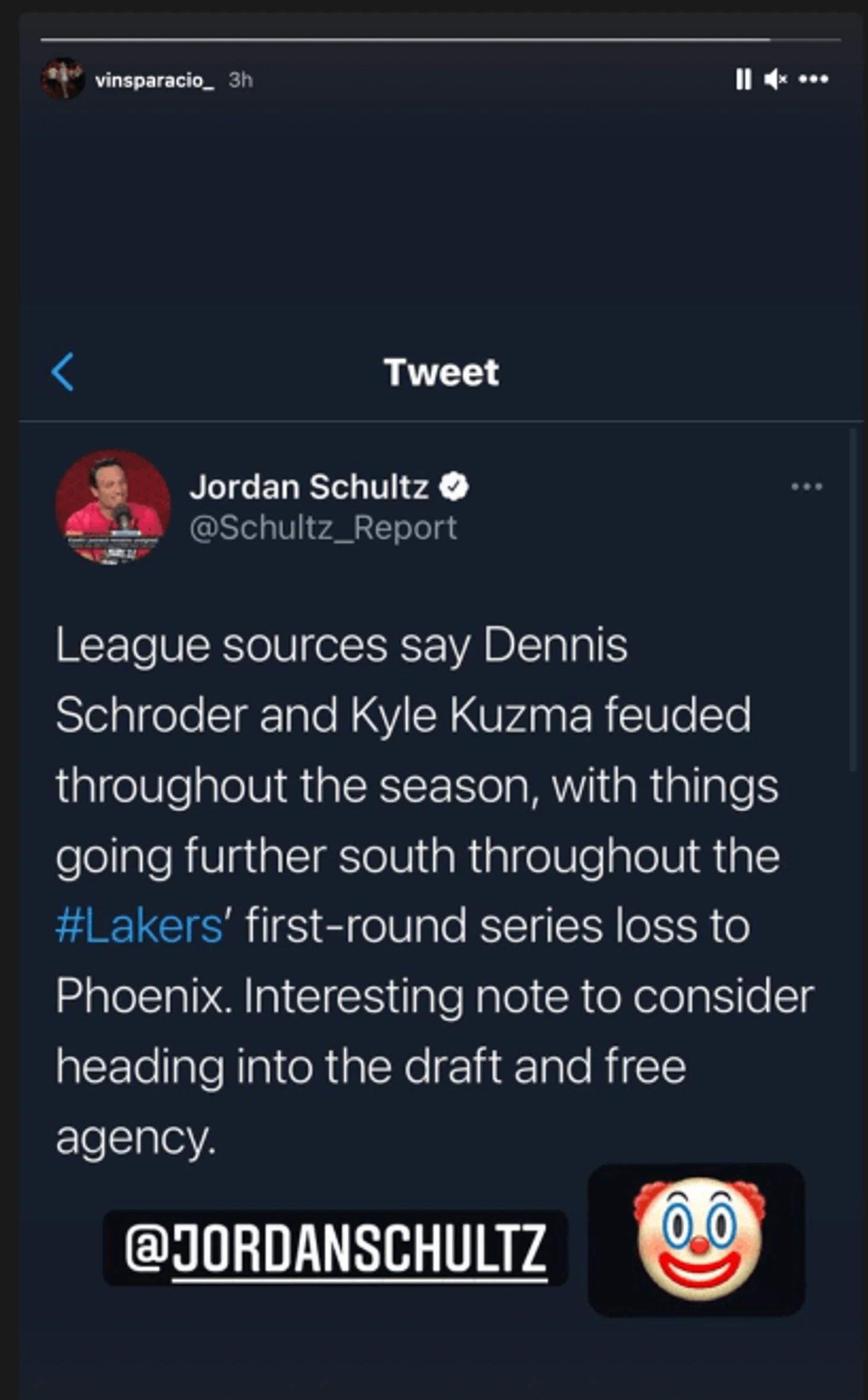 Спарацио выложил в историях инстаграма соответствующее сообщение инсайдера ESPN Джордана Шульца, добавив эмодзи с изображением клоуна.