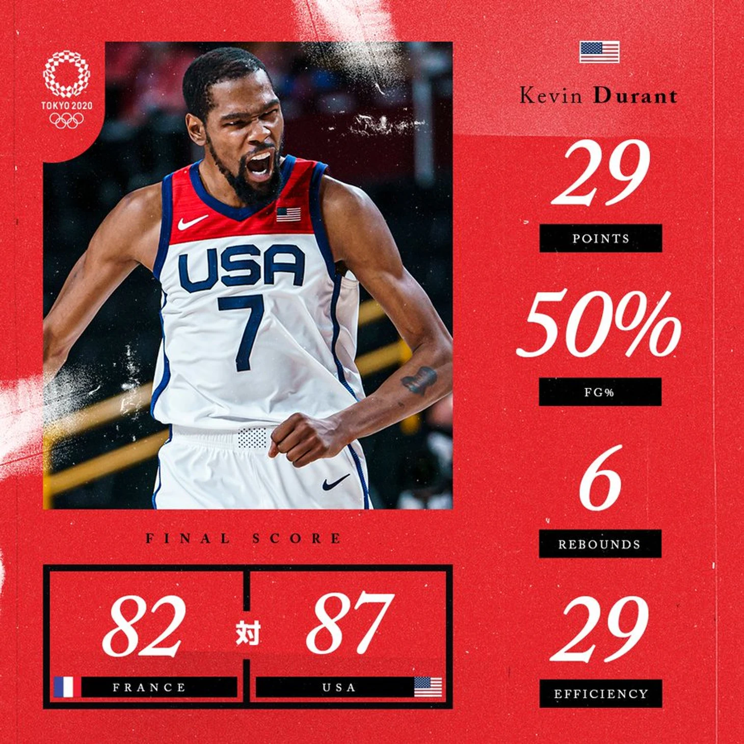 В финальной игре против Франции (87:82) Дюрэнт набрал 29 очков, 6 подборов и 3 результативные передачи.