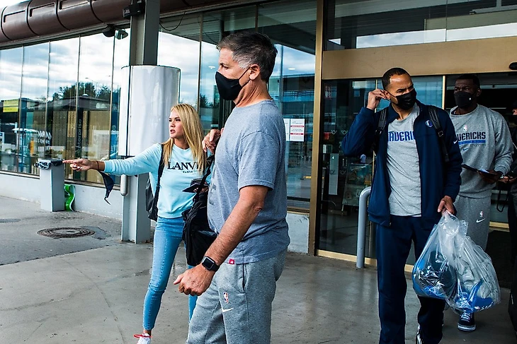 Специальный советник «Далласа» Дирк Новицки, владелец клуба Марк Кьюбан, главный тренер Джейсон Кидд, генеральный менеджер Нико Харрисон и ассистент генерального менеджера Майкл Финли в понедельник прибыли в Любляну.