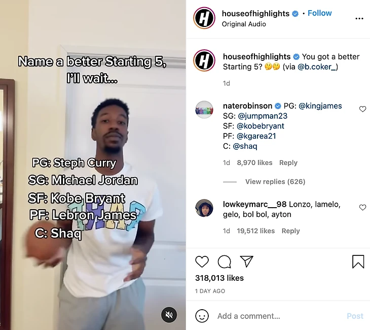 Робинсон поделился своим выбором в комментариях к посту в инстаграм-аккаунте House of Highlights.