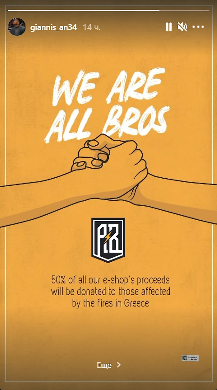 Звездный форвард «Бакс» Яннис Адетокумбо объявил о том, что он вместе с братьями пожертвуют половину от выручки своего интернет-магазина пострадавшим от пожаров в Греции.