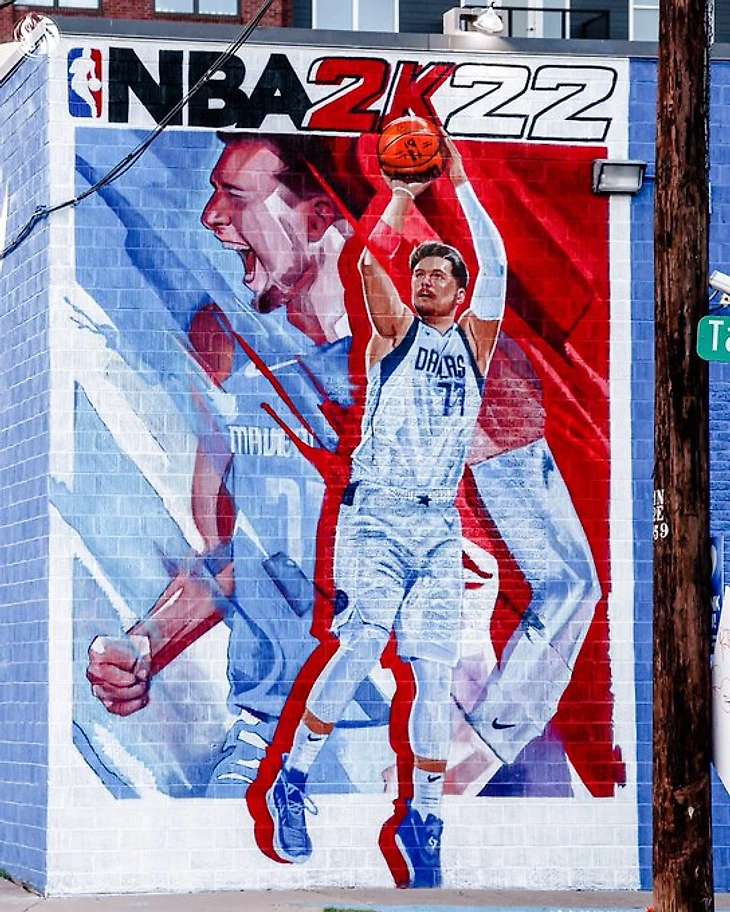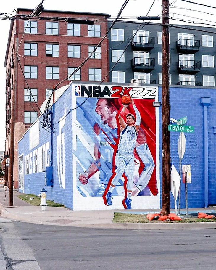 На стене одного из зданий в Далласе появилось крупное изображение лидера местных «Мэверикс» Луки Дончича.
