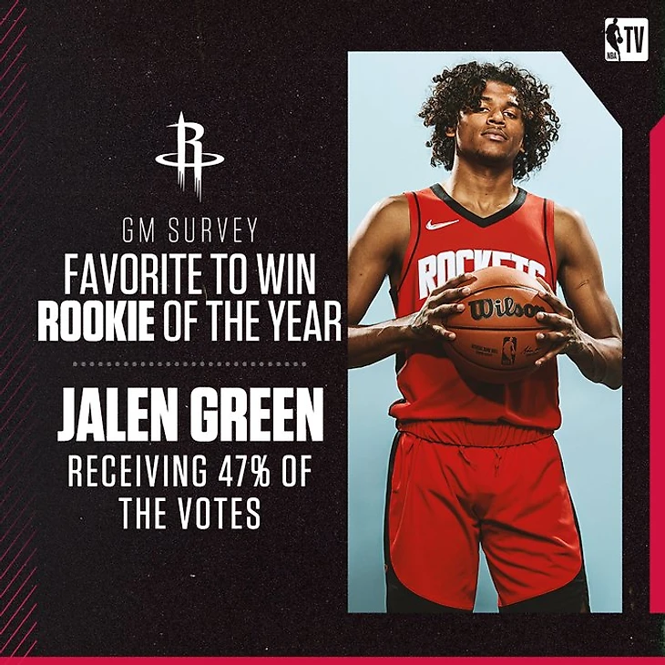 По результатам традиционного ежегодного предсезонного опроса генеральных менеджеров НБА, атакующий защитник «Хьюстона» Джейлен Грин назван главным претендентом на звание лучшего новичка сезона-21/22.